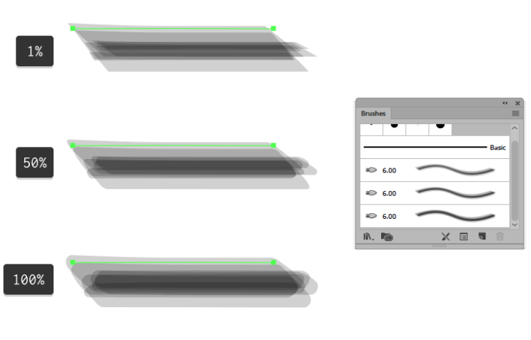 다섯 번째 옵션은 Paint Opacity 이며 페인트 의 불투명도 레벨을 제어합니다.이 레벨은 반투명에서 완전 불투명까지 다양합니다.
