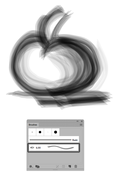 브러시를 사용하려면 브러시 패널 에서 브러시 를 선택한 다음 페인트 브러시 도구 (B)를 사용하여 그리기를 시작하면 됩니다.
