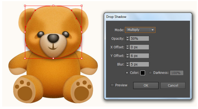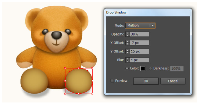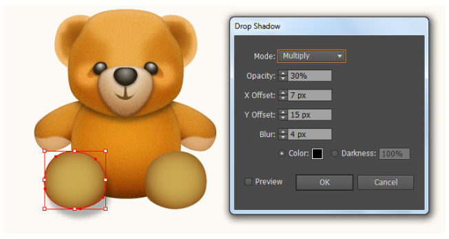 좀 더 사실적으로 보이기 위해 곰인형 아래에 그림자를 덧붙일 것입니다.