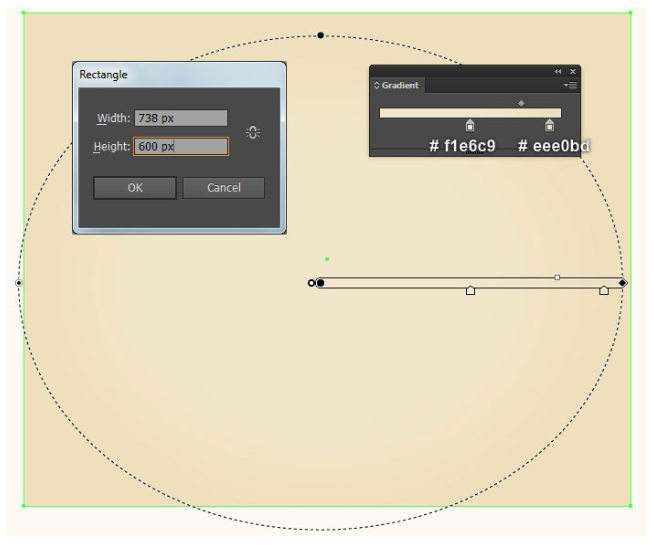 세 번째 이미지에 표시된 대로 데이터를 따르고 확인을 누르십시오. 다음으로 타원 도구(L)와 그라데이션 도구(G)를 사용하여 마지막 두 이미지에서 보는 것처럼 타원을 만듭니다.