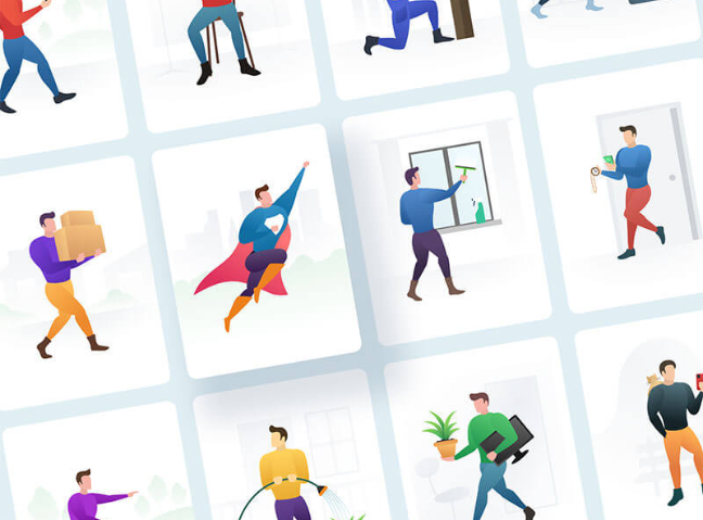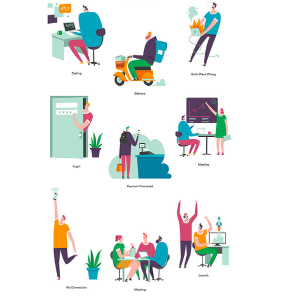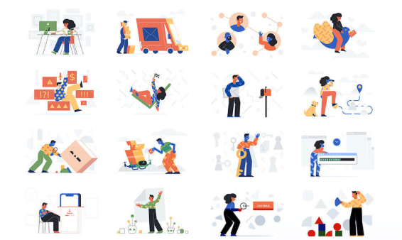 인물을 중심으로 한 다양한 장면 스톡 일러스트 1000여 점이 공개 중.
