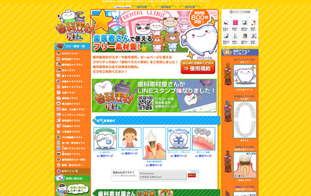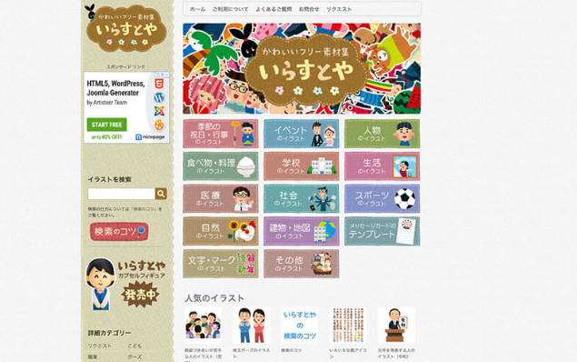 웹 사이트 이름과 귀여운 손으로 그린 일러스트 소재를 갖춘 사이트에서