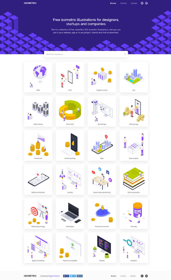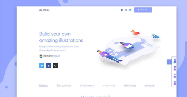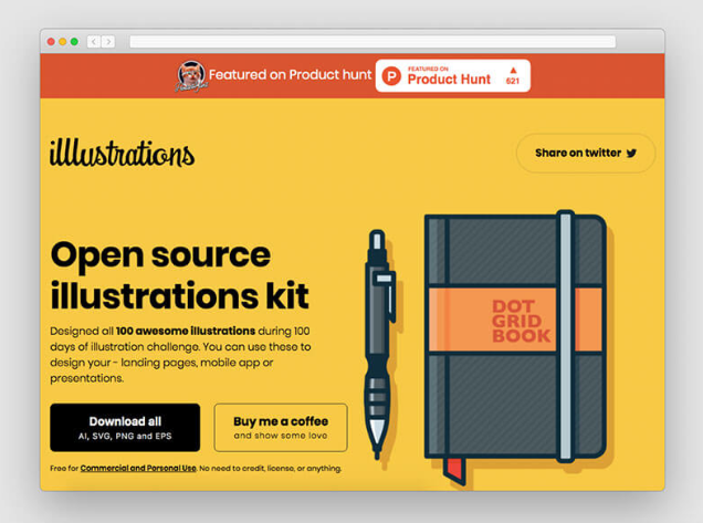 현재 웹 사이트와 모바일 앱 등을 중심으로 한 일러스트 테마를 무료 다운로드 할 수있는 사이트에서