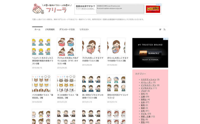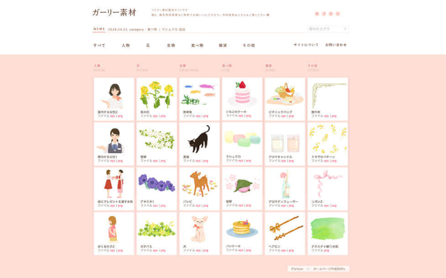 상용 이용도 할 수 있는 100 종류의 귀여운 일러스트를 공개하고있는 사이트에서