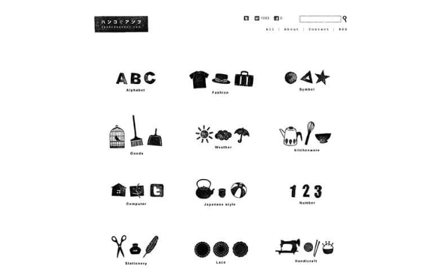 핸드 메이드 느낌의 도장을 모티브로 한 일러스트 소재를 갖춘 사이트 입니다.