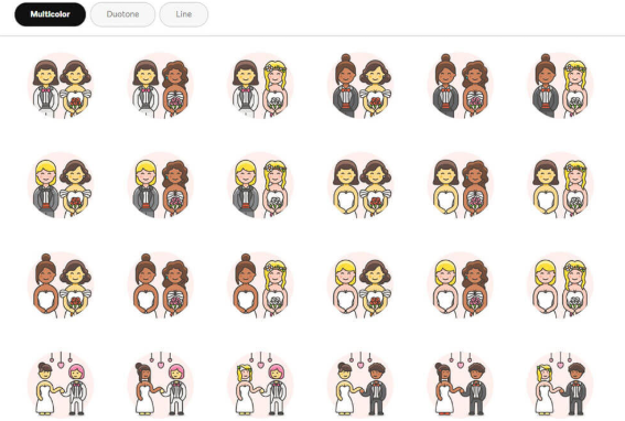 또 하나의 소재 팩은 240개의 아이콘 소재를 모은 Free LGBT Illustrations .