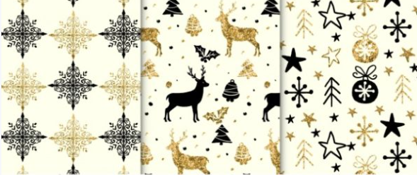 배경을 채울 것이 필요하십니까? 이 크리스마스 패턴 컬렉션은 올바른 선택입니다. 원활한 패턴 과 크리스마스 요소가 포함 된 기발한 패턴을 모두 제공합니다 . 초대장, 인사말 카드 또는 기타 인쇄물에서 워터 마크 배경으로 사용할 수 있습니다. 이러한 패턴의 가장 좋은 용도 중 하나는 선물 포장지에도 사용할 수 있습니다. 이러한 배경으로 선물을 포장하여 축제 분위기를 연출하세요. 요소에 검은 색과 황금색으로 겹쳐진 흰색 배경을 사용하면 이러한 패턴이 고급스러워집니다.