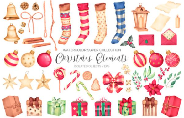 Download Super Collection Of Watercolor Christmas Elements for free