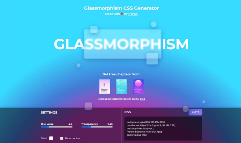 온라인 무료 서비스 Glassmorphism CSS Generator를 사용하는 것이 좋습니다.