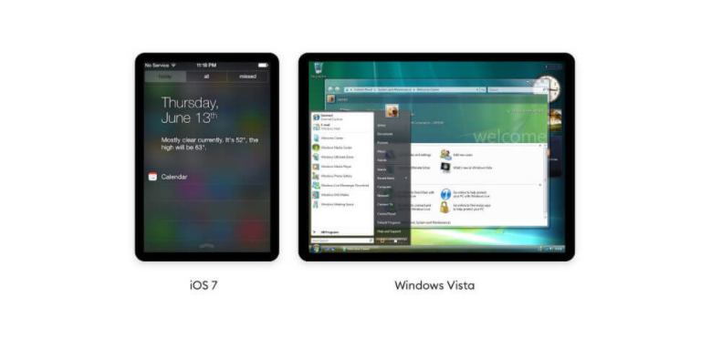 이 스타일은 재설계된 얇은 글꼴과 아이콘 디자인의 디스플레이에서 논란이 되었지만