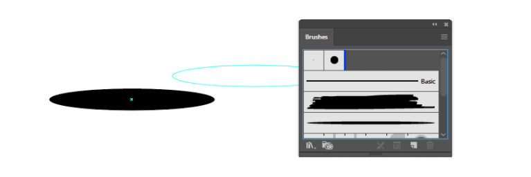그런 다음 이 타원을 잡고 브러시 패널(창 > 브러시)로 끕니다.