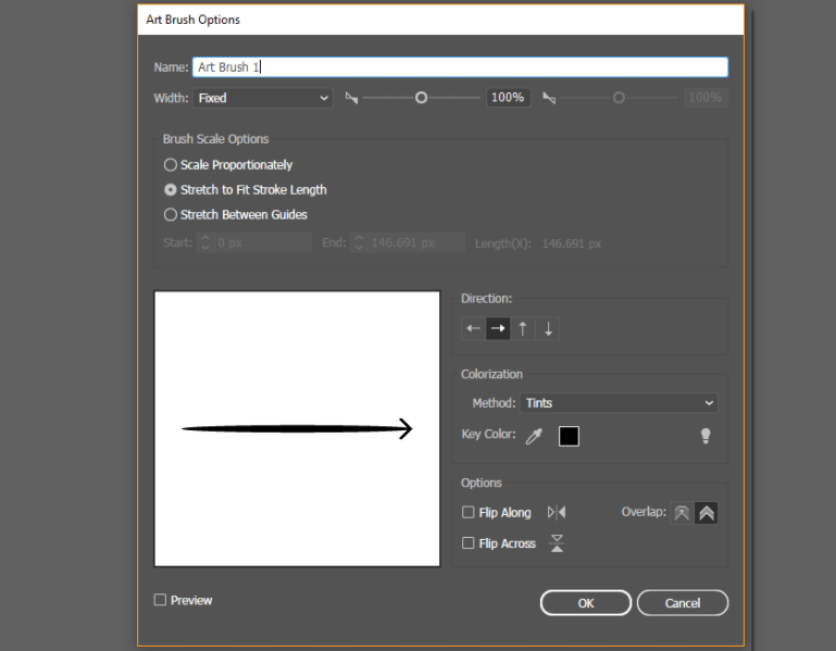 새 Illustrator 브러시의 옵션은 다음과 같습니다.