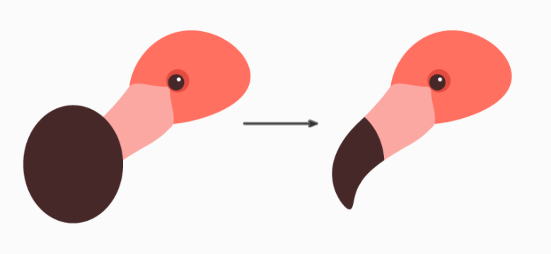 플라밍고의 머리 아래에 부리를 놓습니다. (Control-X, Control-B)