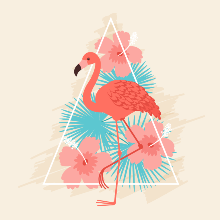 그리고 마지막으로, 홍학을 배경 중앙에 놓으면 우리의 일러스트가 완성됩니다!