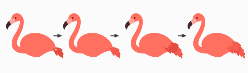 방금 만든 아트 브러시를 사용하여 아래와 같이 플라밍고의 꼬리에 깃털을 그려보세요.