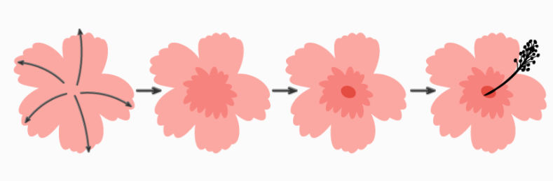 아래 이미지의 화살표 방향을 따라 꽃잎을 그립니다.