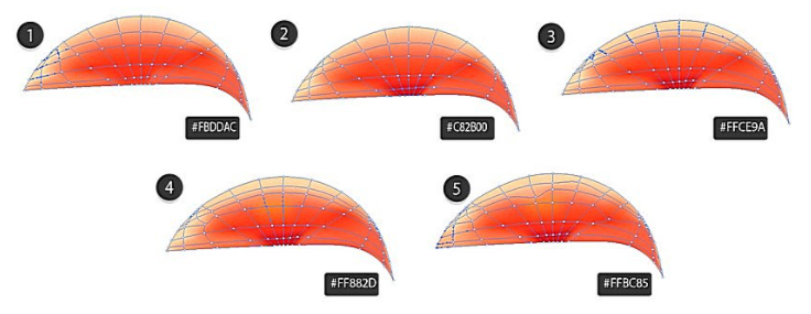 #FF901C로 네 번째 단계에서 좀 더 진한 오렌지 톤을 더하고 #FF6F1C와 #FF6E20으로 더 어둡게 합니다.