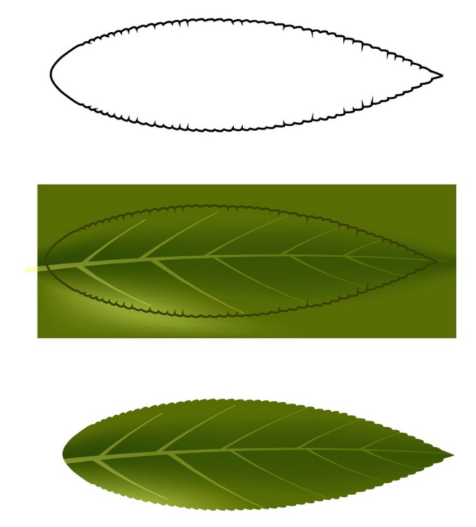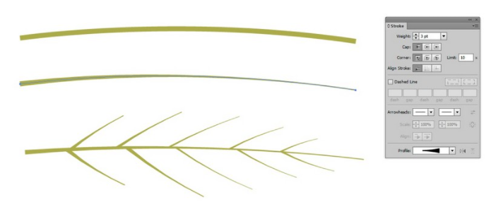 1. 표시된 스트로크 프로파일을 사용하여 펜 도구(P)를 사용하여 리프의 일부를 그립니다