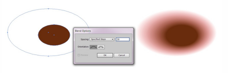 8. Object > Blend > Blend Options로 이동하여 Specific Steps 및 30을 선택합니다.