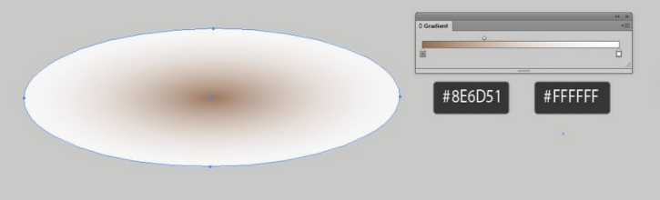 7. 타원에 방사형 그라데이션(#8E6D51 ~ 흰색)을 적용하여 그림자를 그립니다.