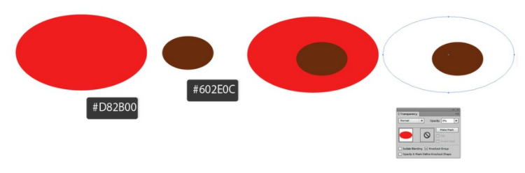 갈색 타원을 빨간색 타원에 넣은 다음 큰 타원을 완전히 투명하게 만듭니다.