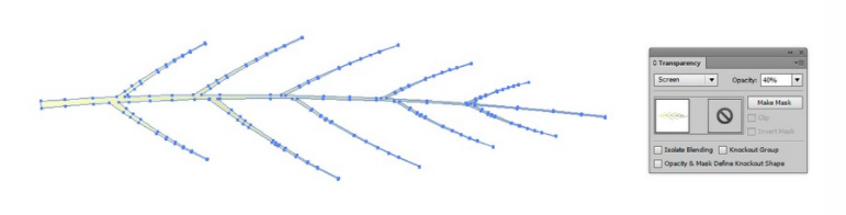 5. 잎의 윤곽을 그려 망사 위에 놓고 Clipping Mask를 적용합니다.