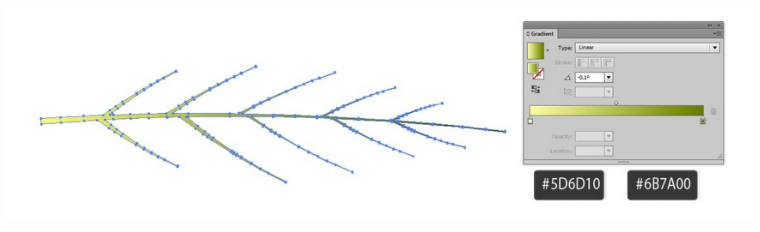 그런 다음 선형 그라데이션(#5D6D10 ~ #6B7A00)을 적용합니다.