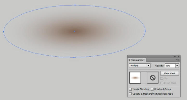 8. 타원을 86% 불투명도와 곱셈으로 변경합니다.