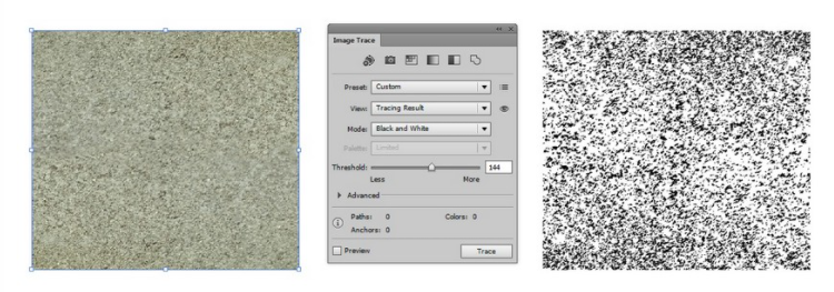 모드를 흑백으로, 임계값을 144로 변경한 후 추적을 클릭합니다. 결과를 확장합니다.