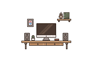 테이블 상단에 440x20 픽셀의 직사각형 (Color : # EBBD63)을 그리고 획 두께를 6px로 설정합니다. 획 패널에서 윤곽에 라운드 조인을 적용합니다.